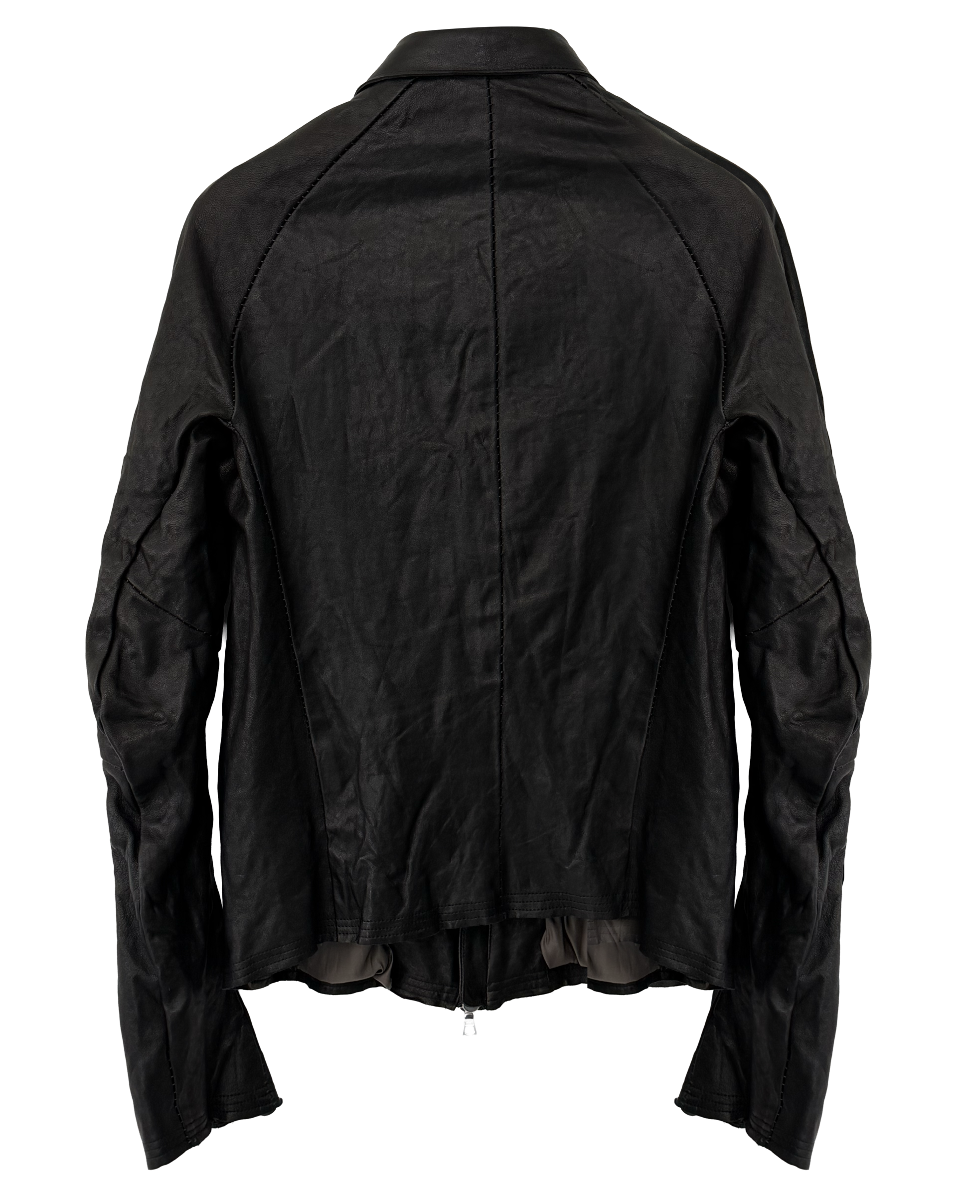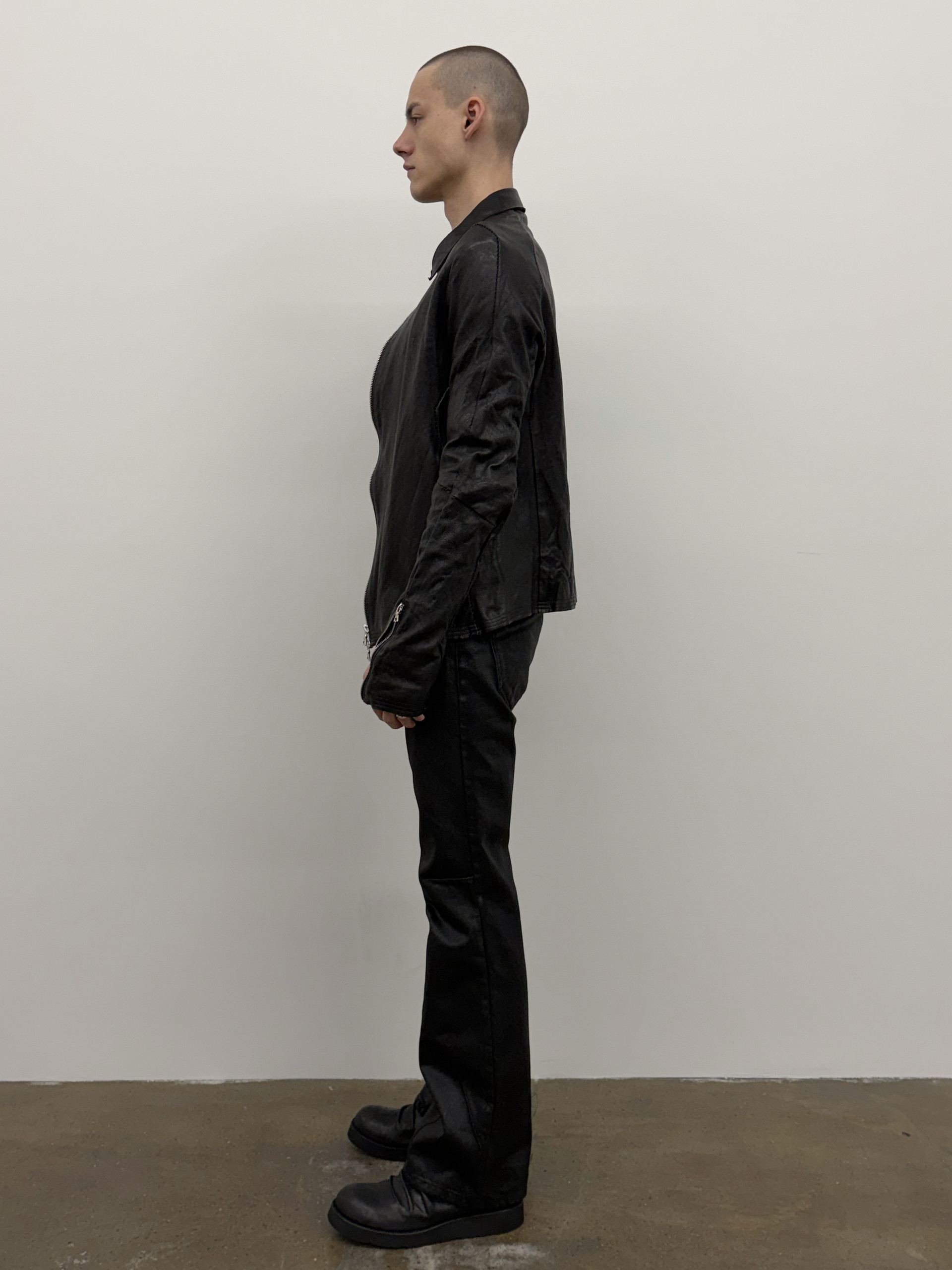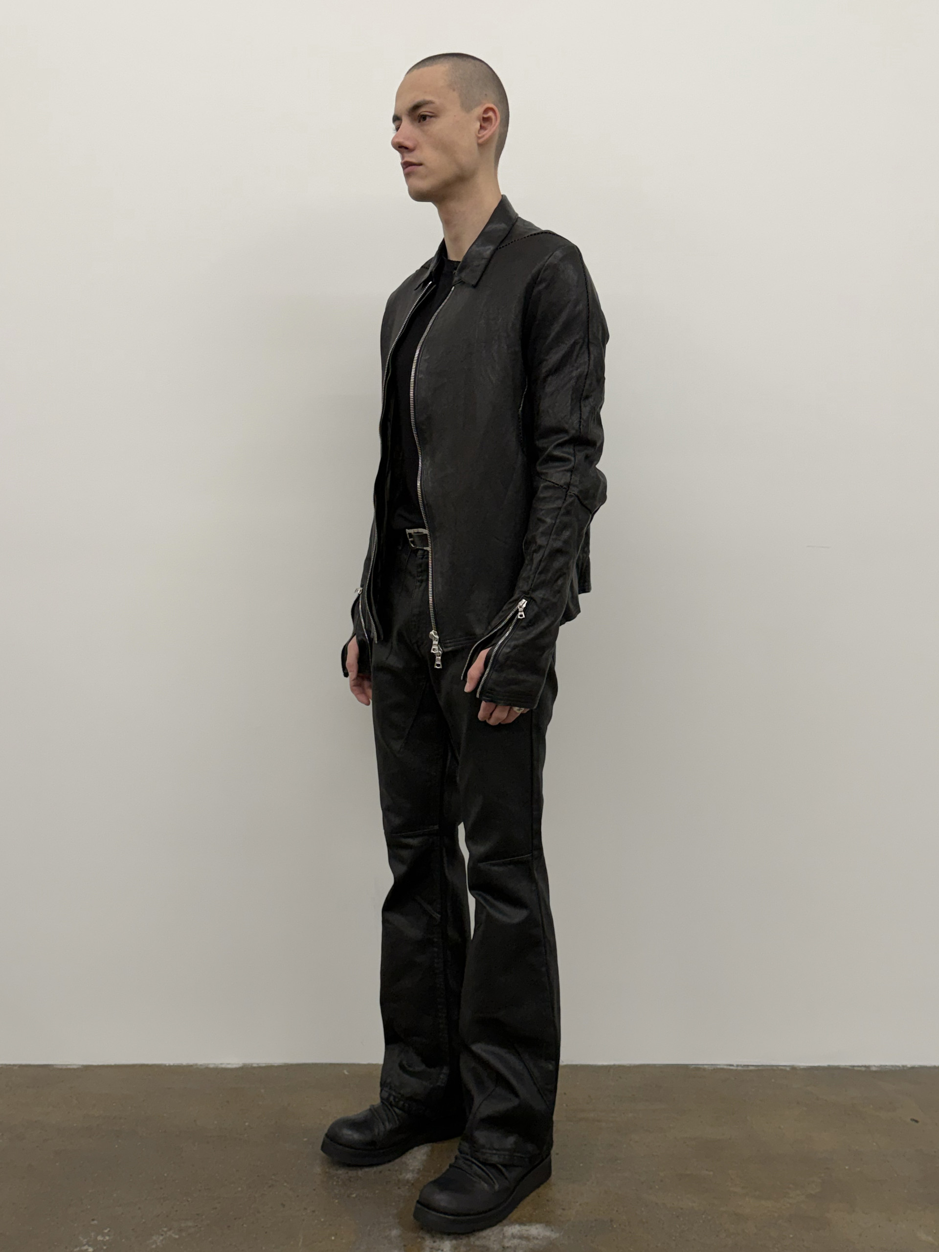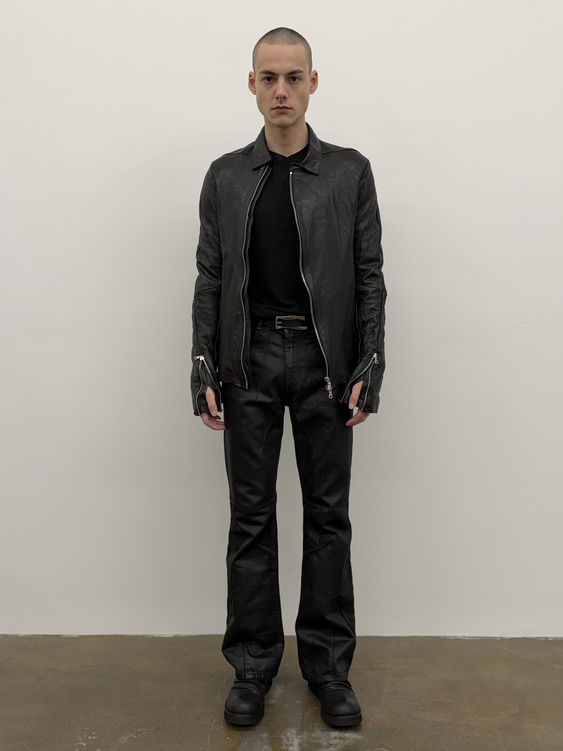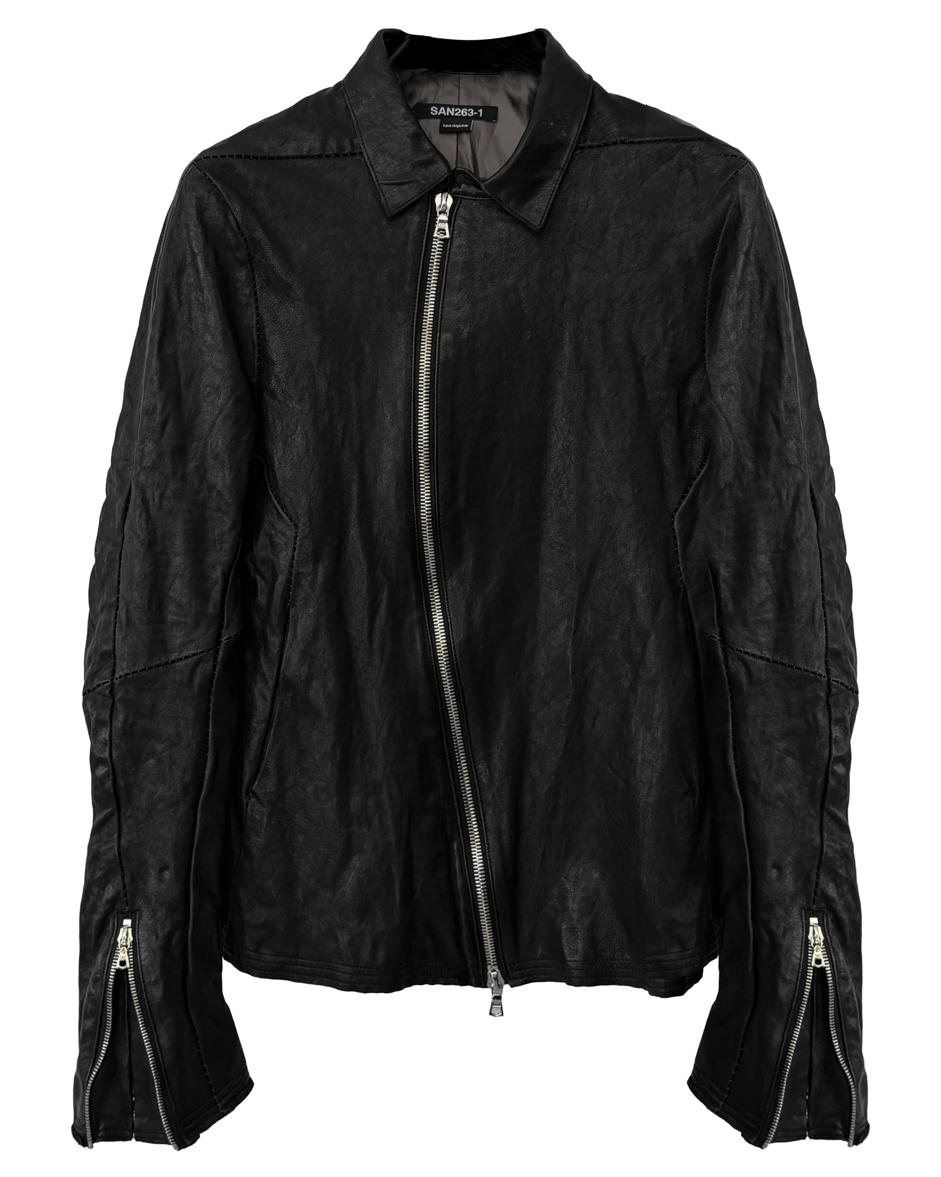Features a curved Riri® two-way zipper, open sleeve Riri® zippers, and finger holes.Includes one interior pocket and two exterior pockets.