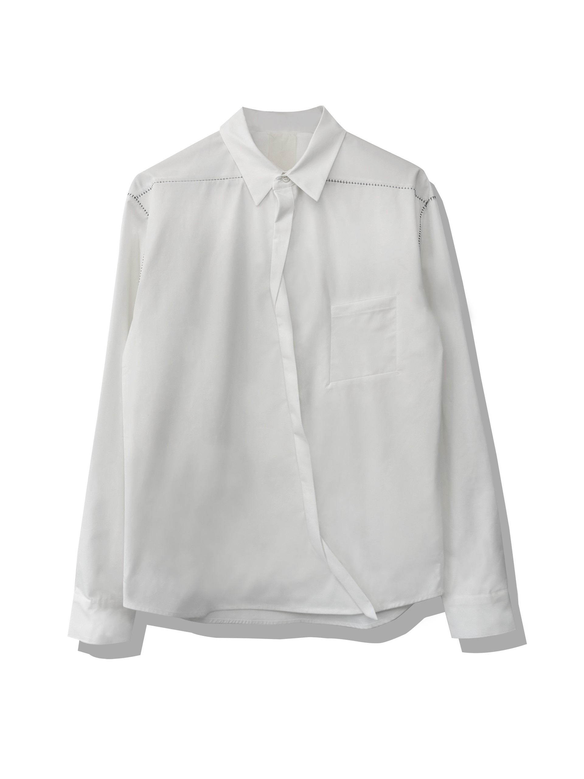 비대칭 원단 접힘 구조의 앞 여밈 디자인