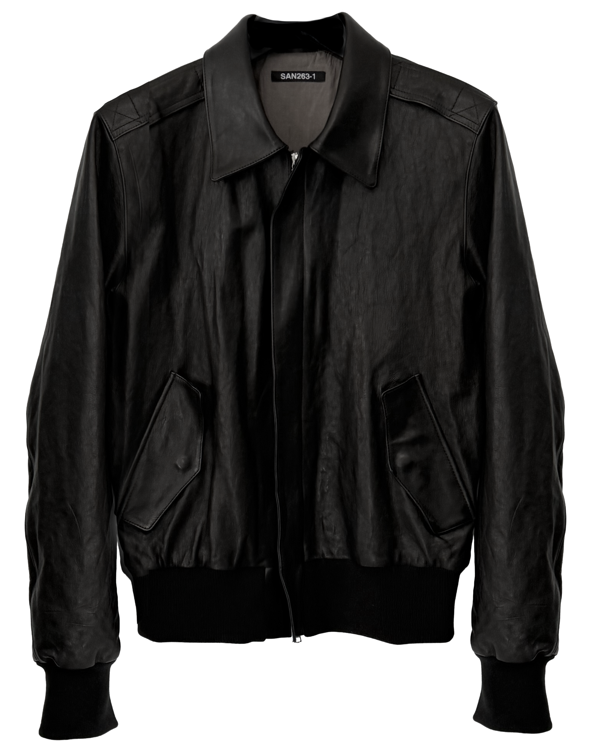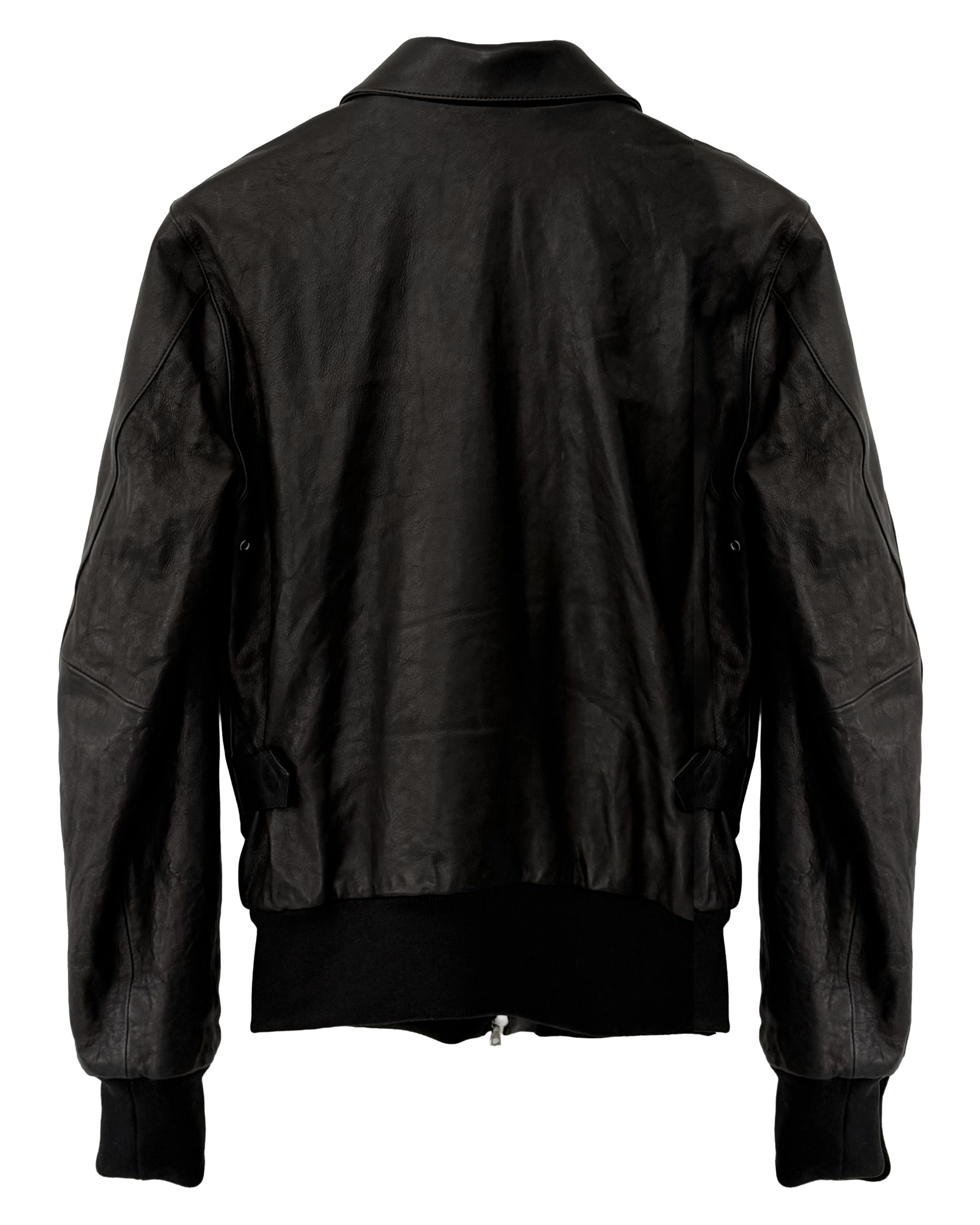 Hand-washed lambskin A-2 jacket with hidden Riri® two-way zipper.