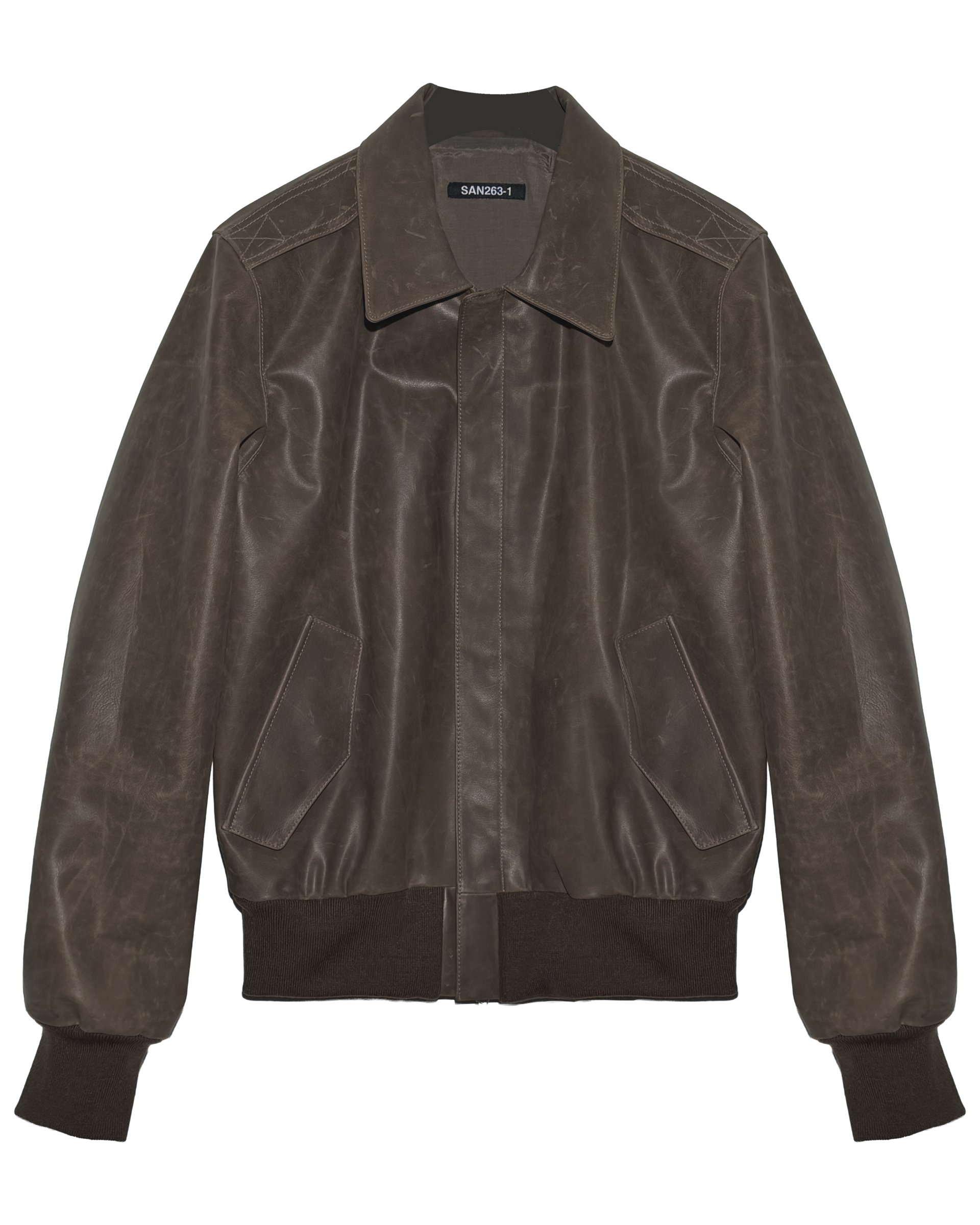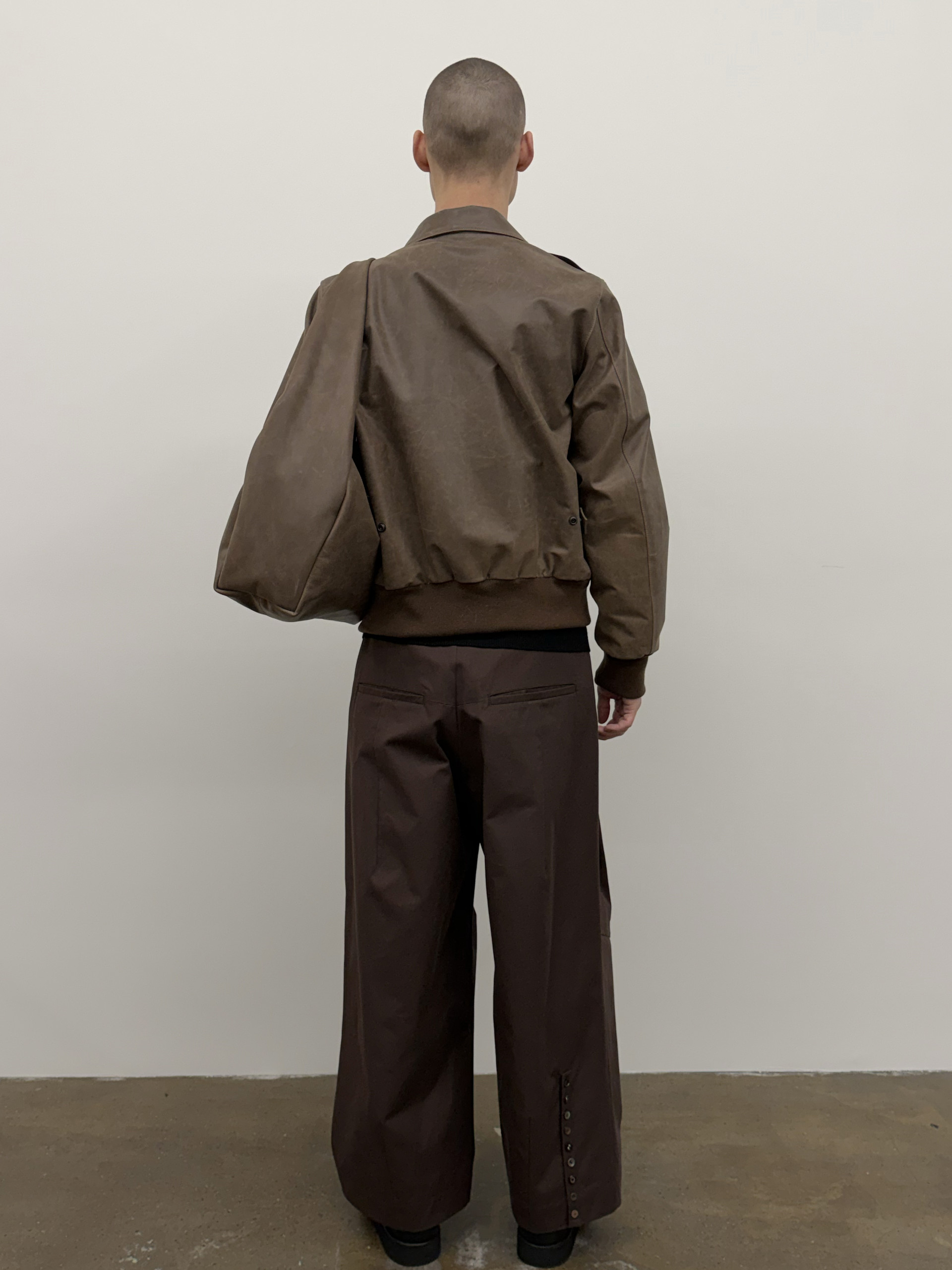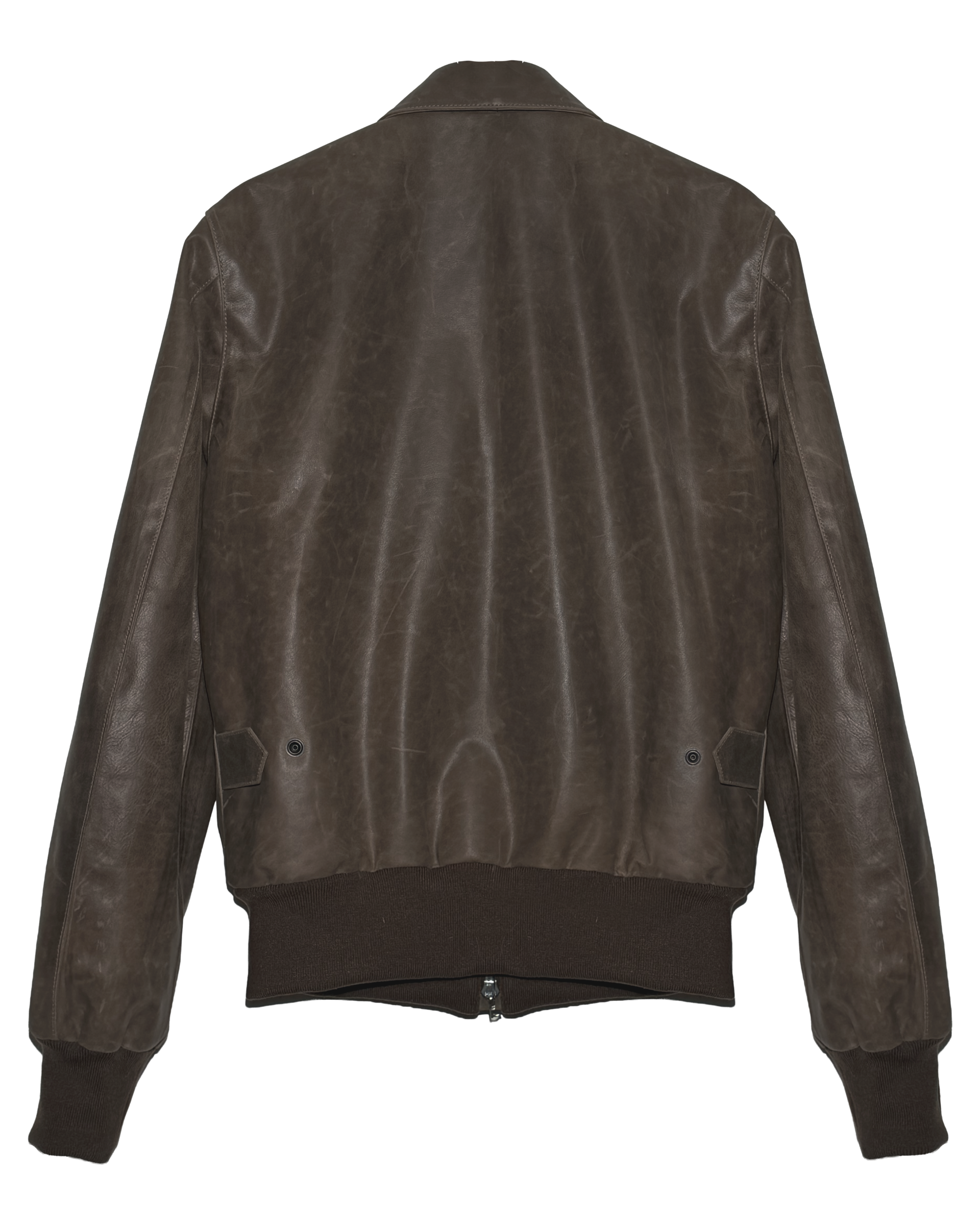 Waxed cowhide A-2 jacket with visible waxed texture.