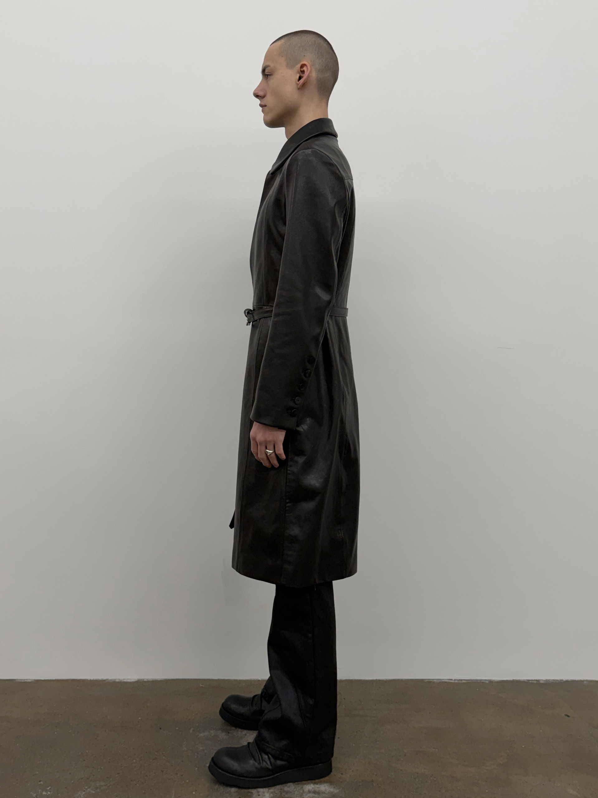Vegetable-tanned lambskin leather coat.