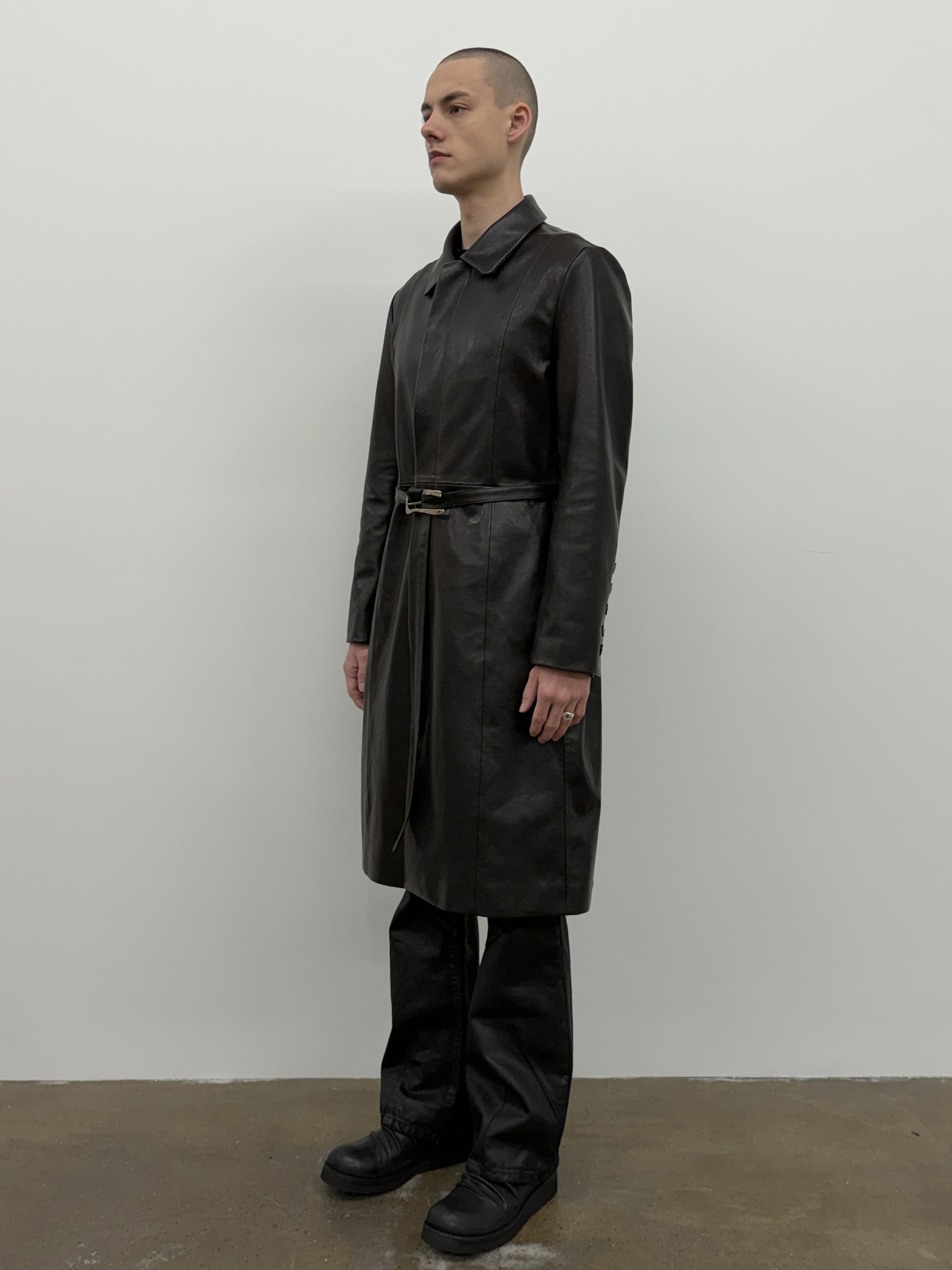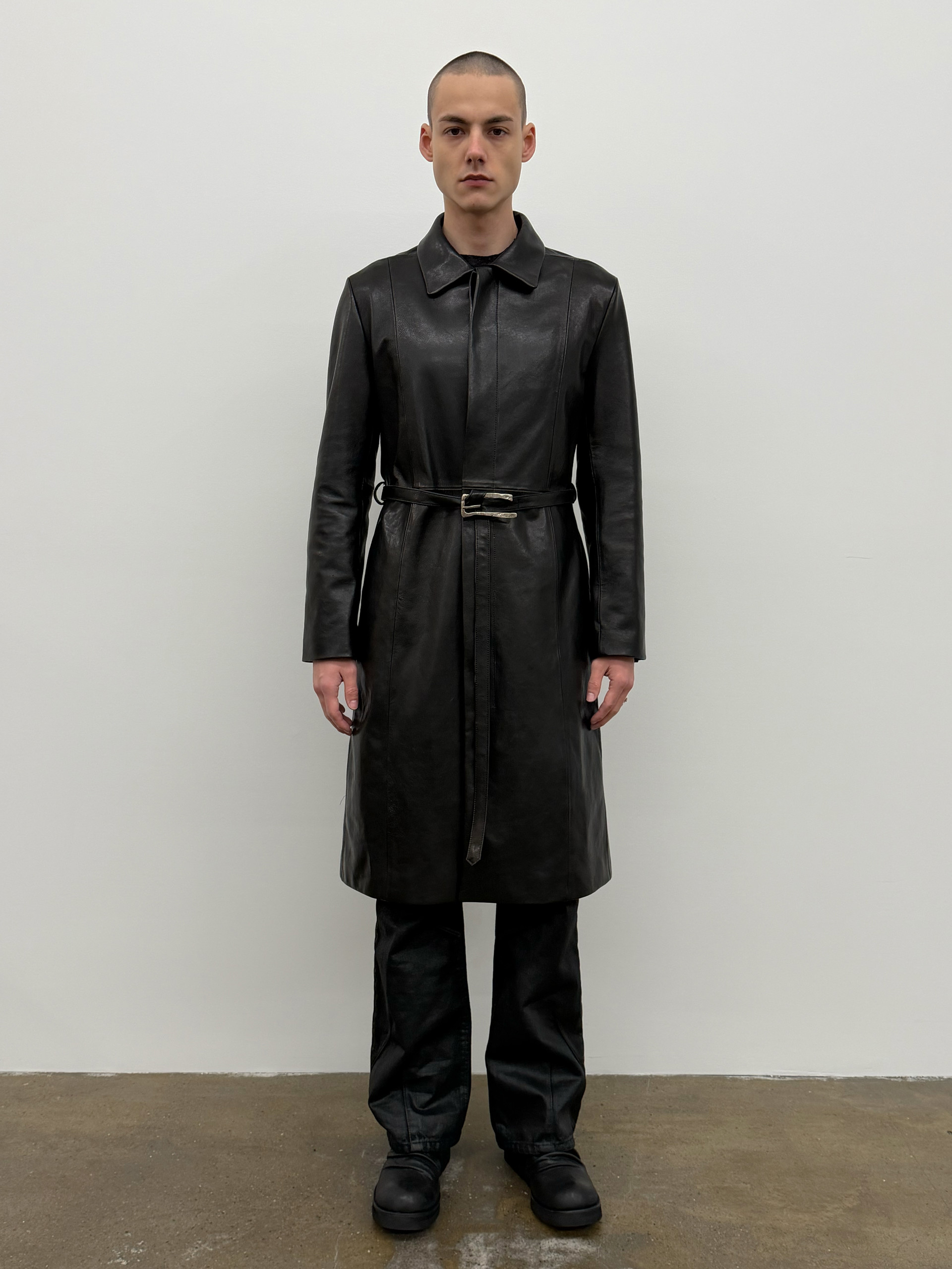 Belted Single Leather Coat
