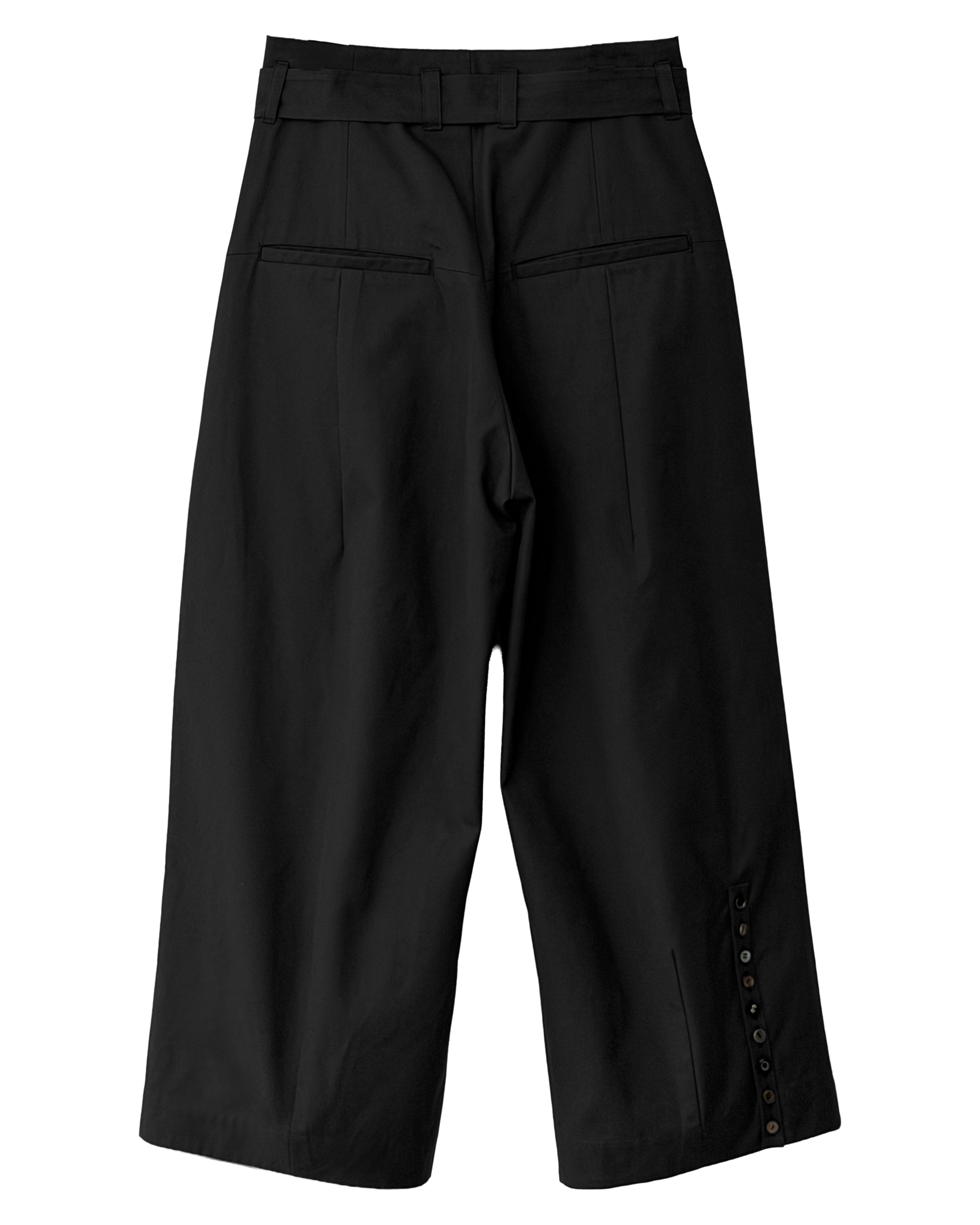 Ultra high-density gabardine cotton trousers with knee and hem darts.