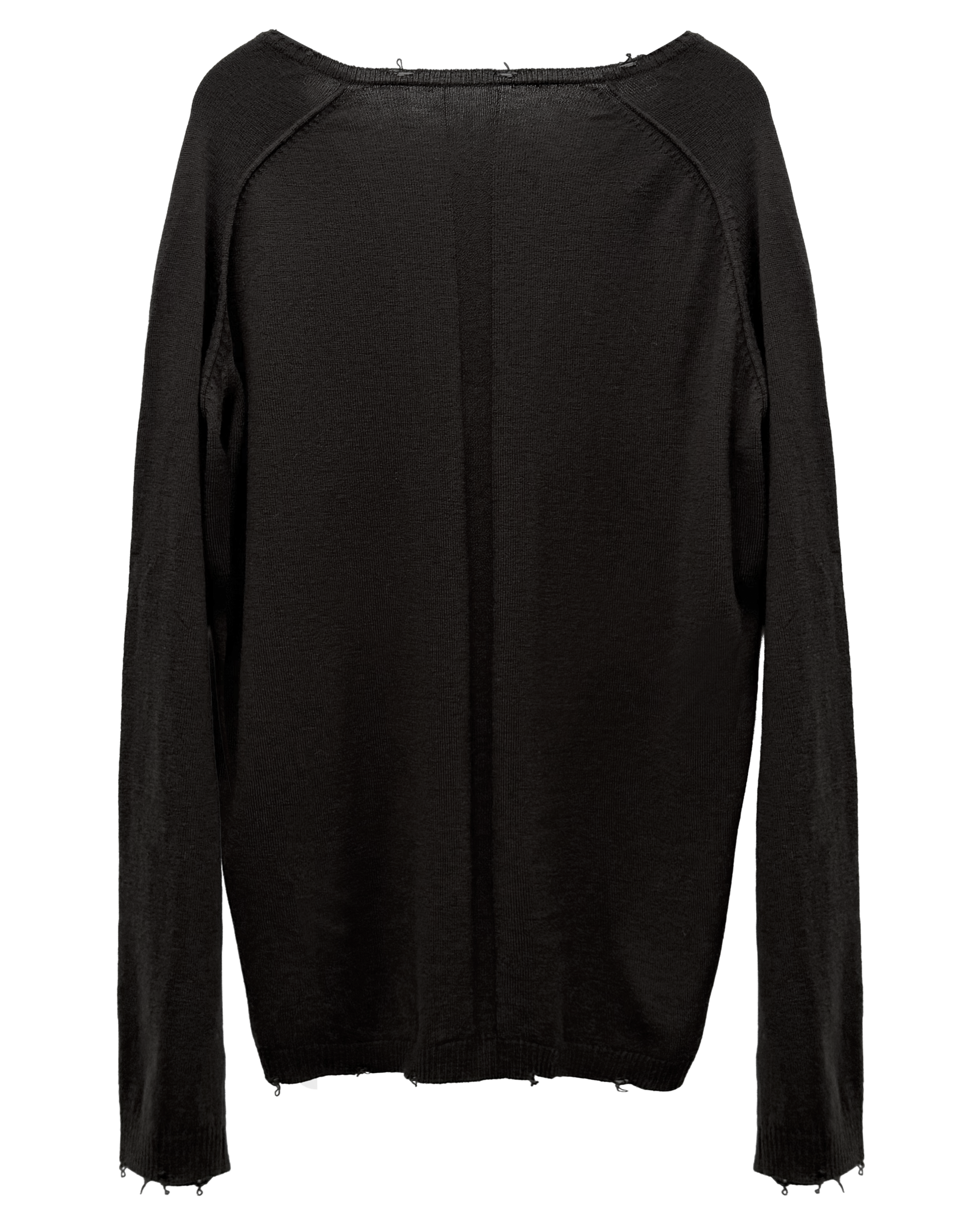 Merino wool V-neck knit with vintage cut detail.