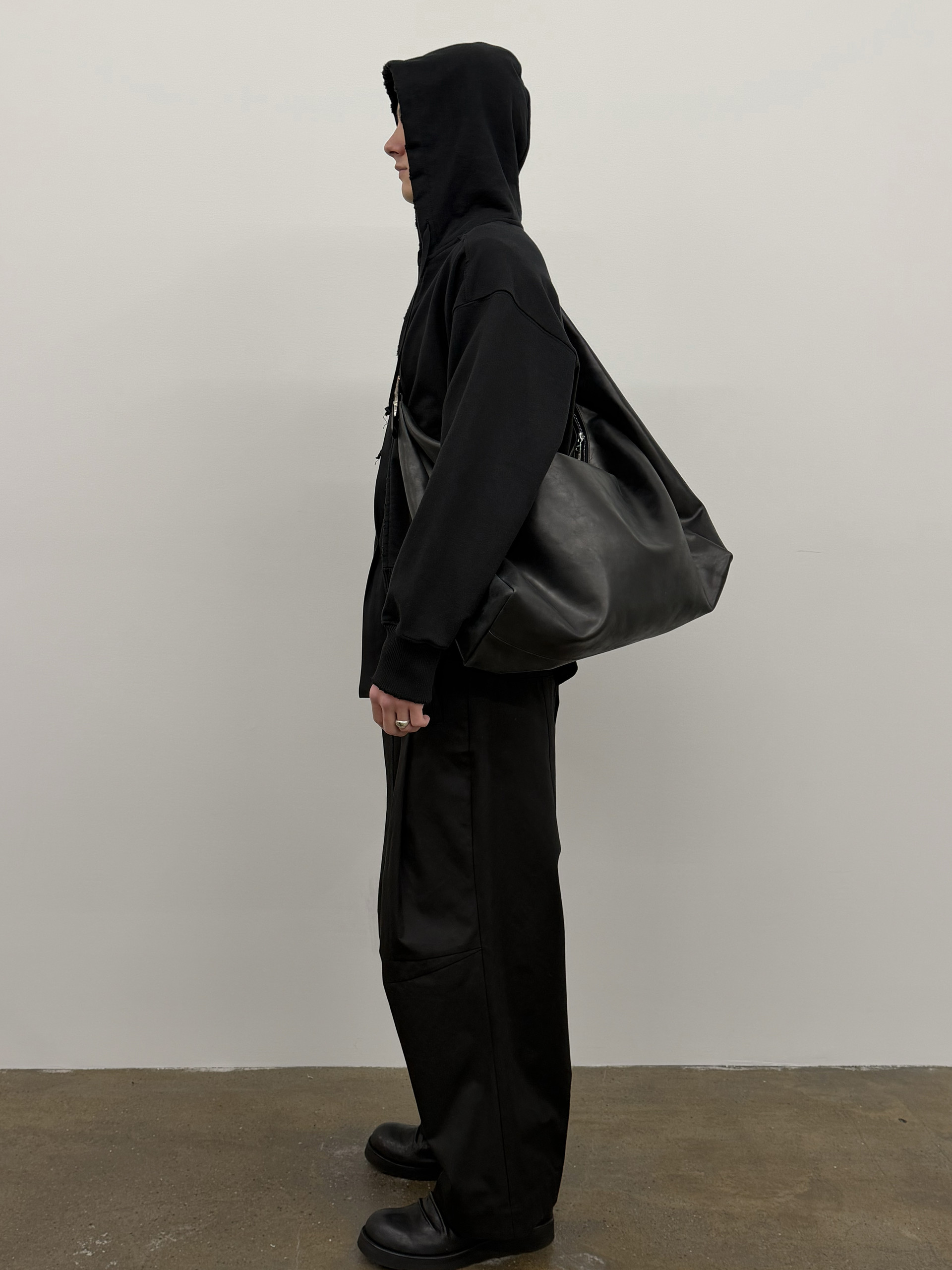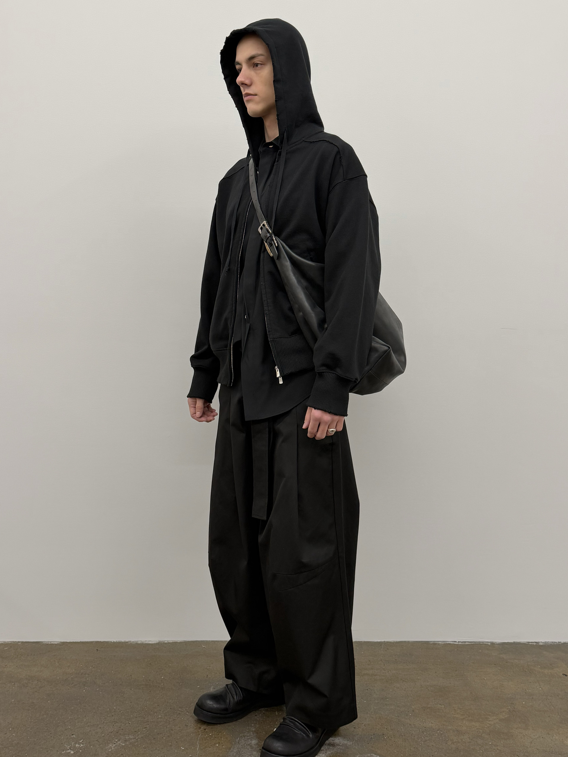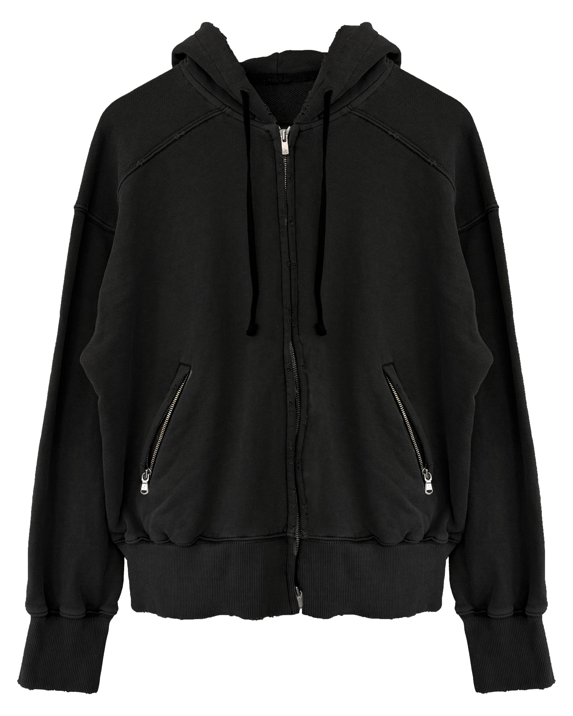 Enzyme-washed oversized hoodie with Excella® two-way zipper.