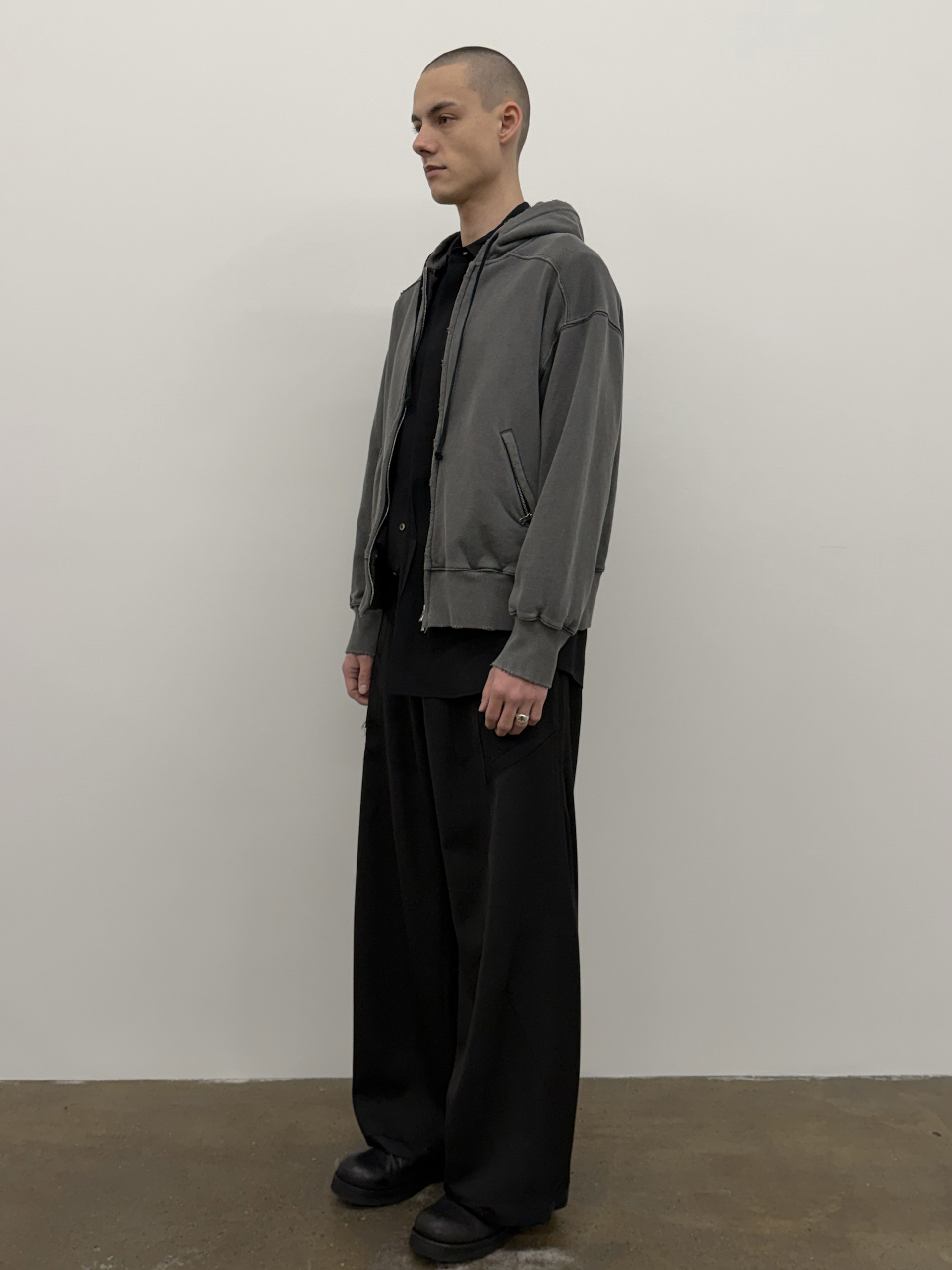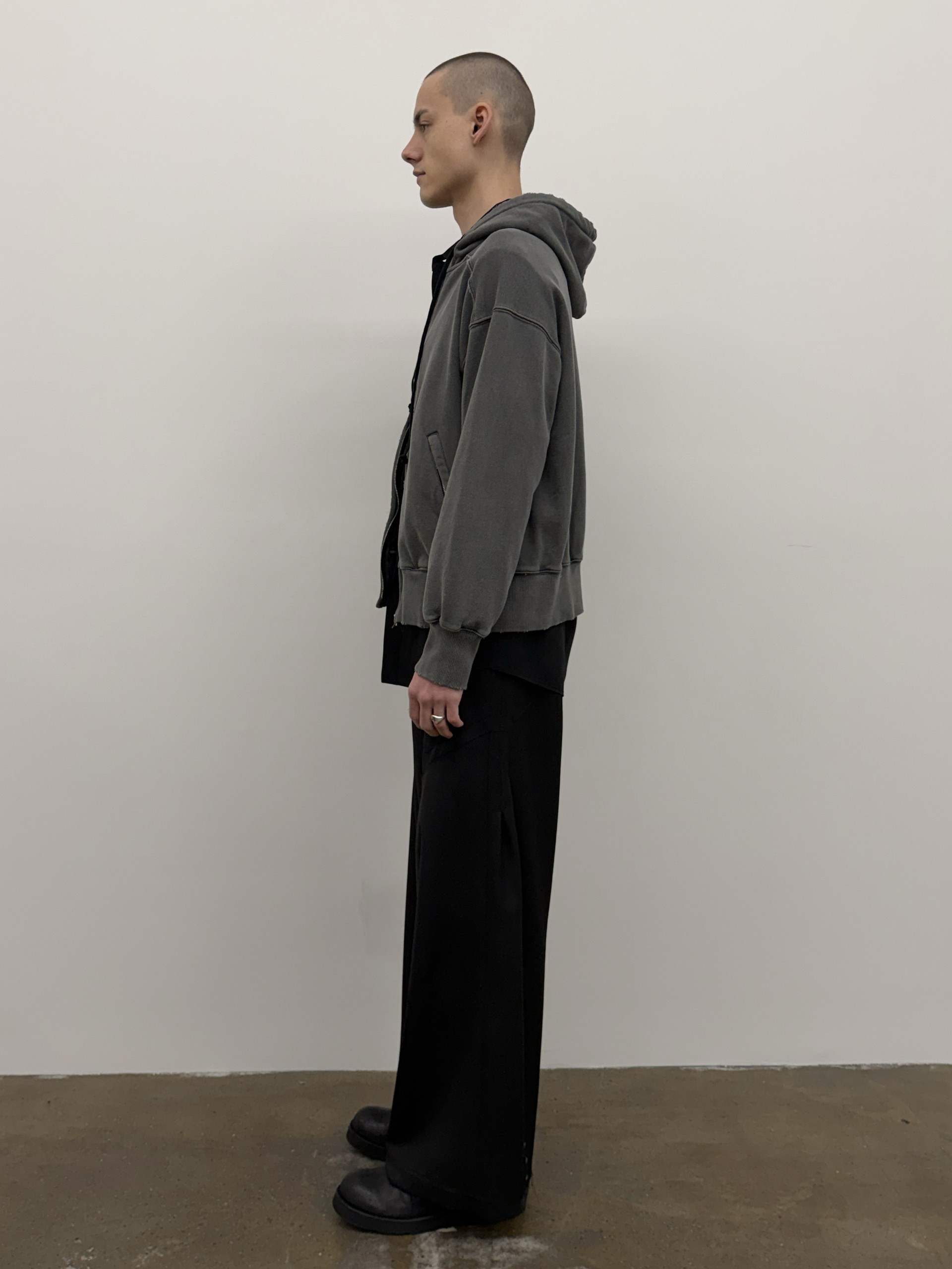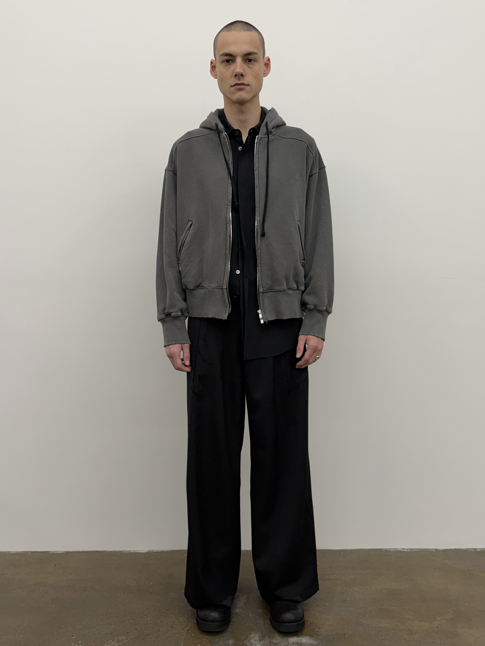 Enzyme-washed oversized hoodie with Excella® two-way zipper.