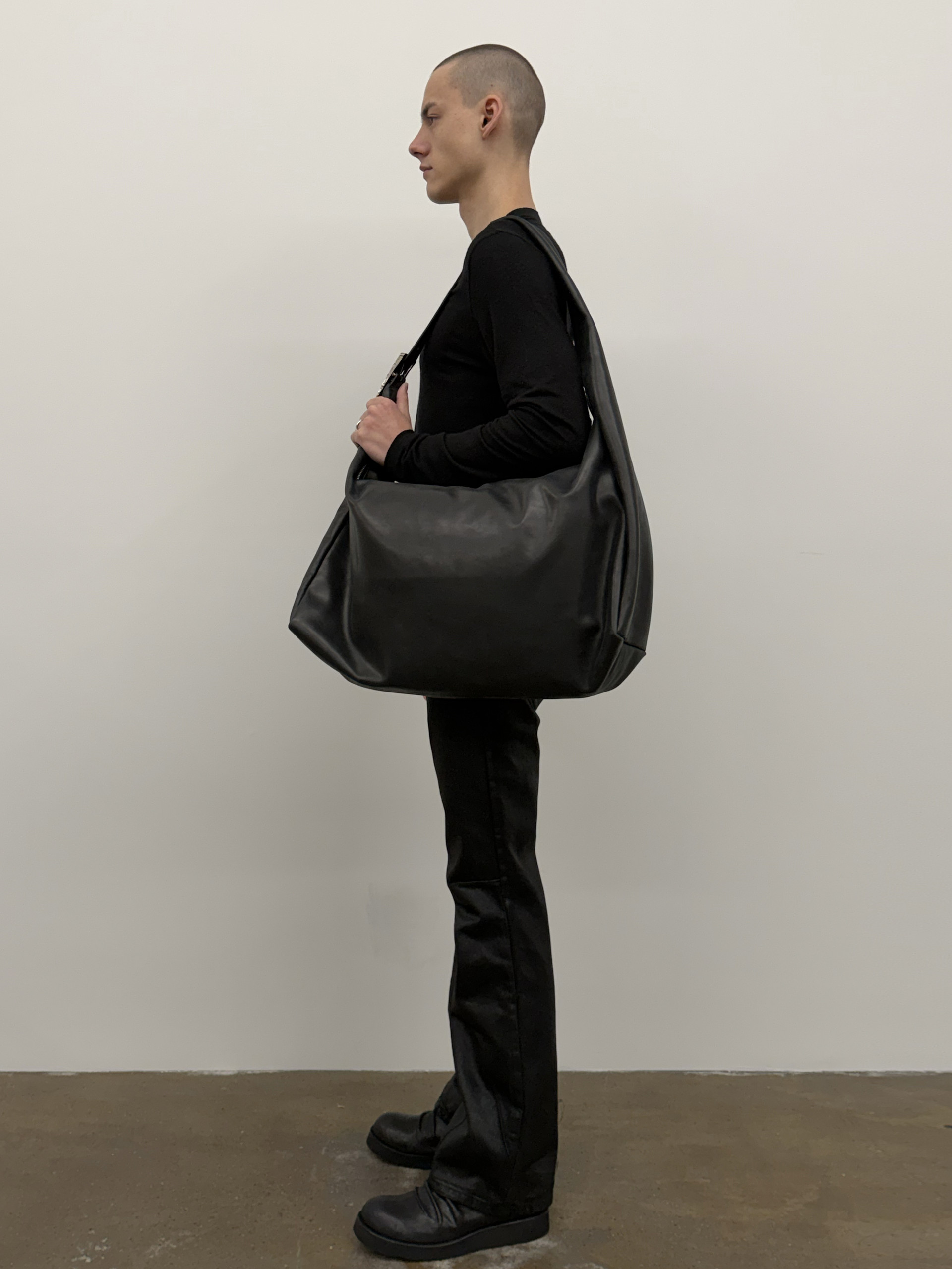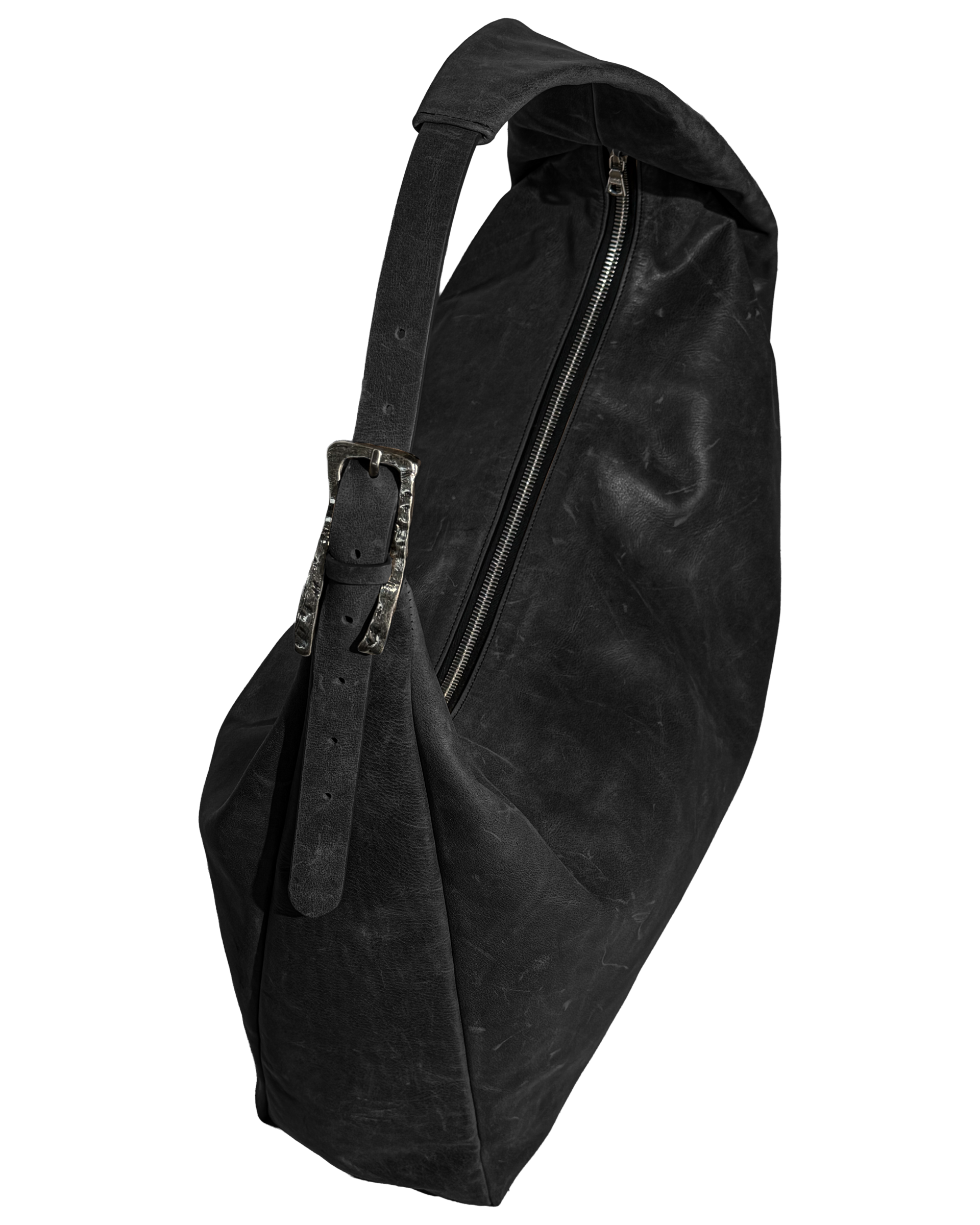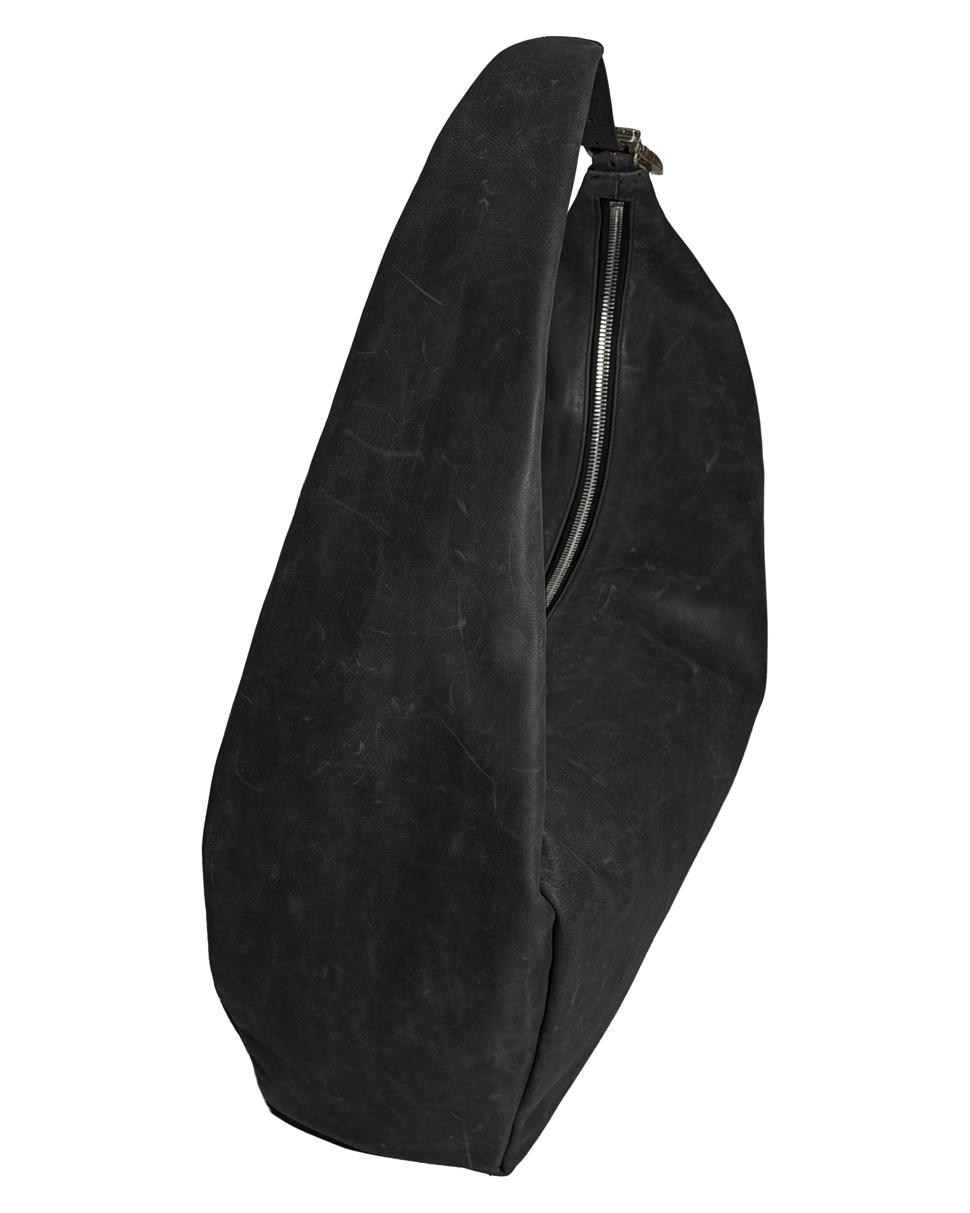 Waxed cowhide leather hobo bag with visible waxed texture.
